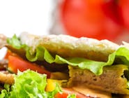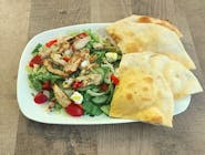 Sałatki podawane z włoskim chlebkiem focaccia.