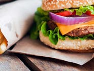 Kotlet Gordon (szynka, ser) z ziemniakami lub frytkami, surówka -